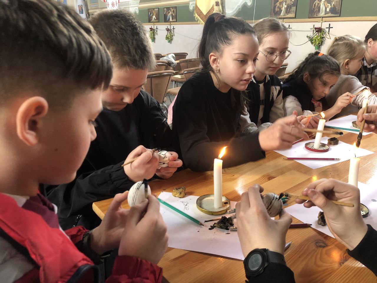 У суботу, 5 квітня, в нашій церкві відбувся теплий і натхненний майстер-клас з писанкарства. Діти нашої парафії зібралися разом, щоб зануритися в атмосферу Великого посту та приготування до Воскресіння Христового через створення традиційної української писанки.