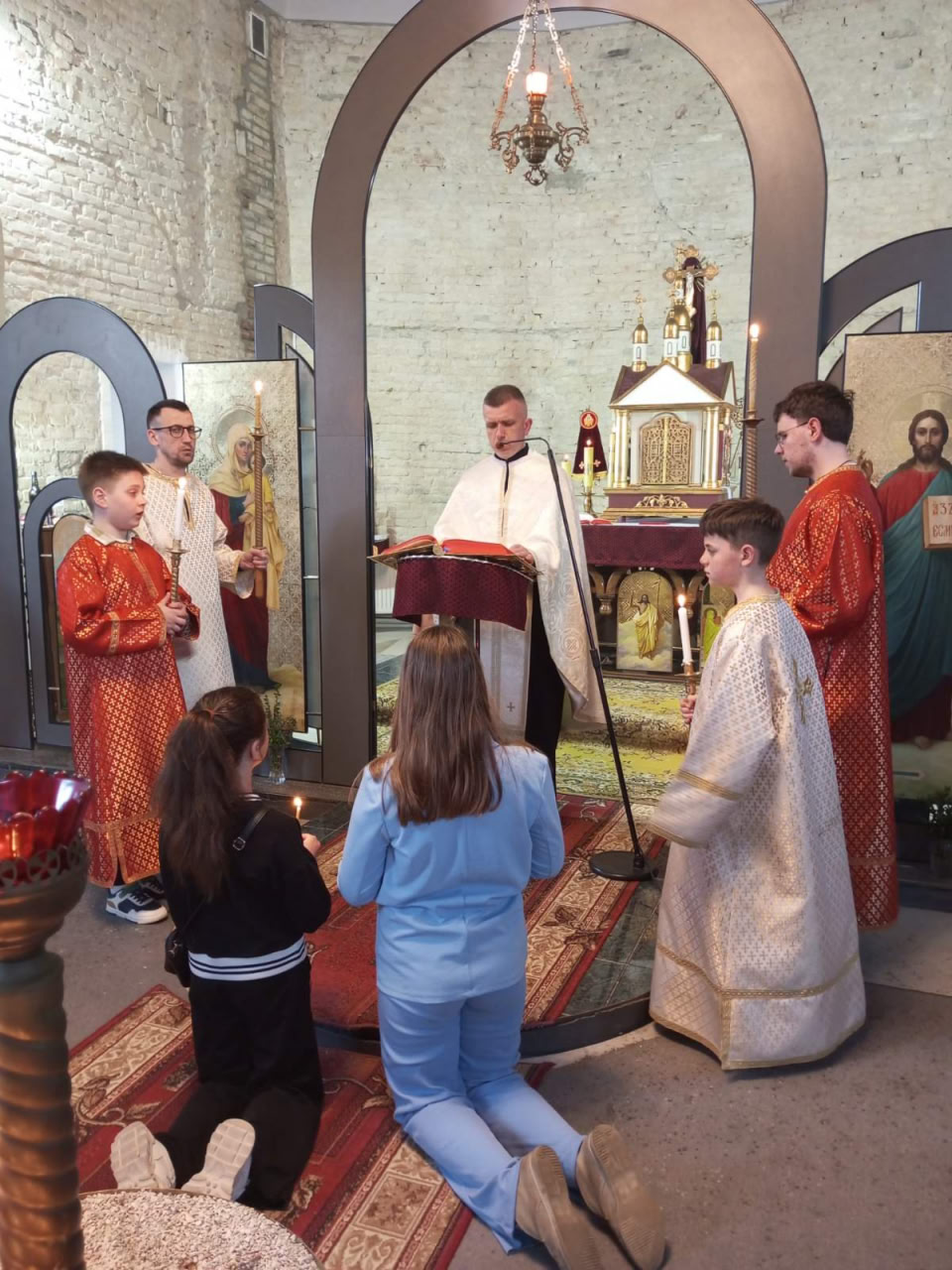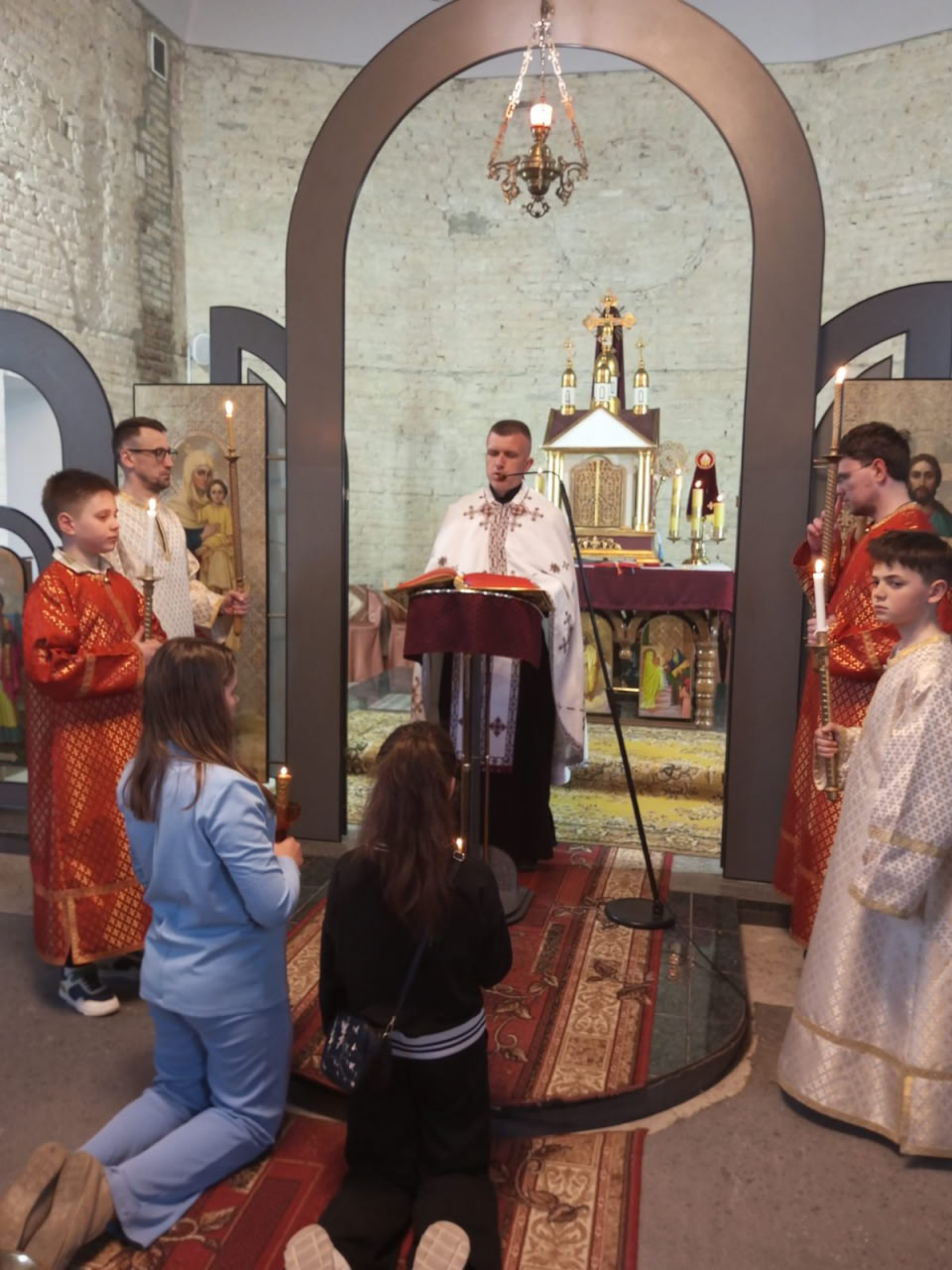 Починаючи з понеділка Страсного тижня, у нашому храмі служилися Літургії Передшеосвячених Дарів — особливі богослужіння, які поєднують в собі глибину покаянної молитви з можливістю євхаристійного єднання з Христом. Ці літургії створили особливий настрій тиші та очікування Пасхи.