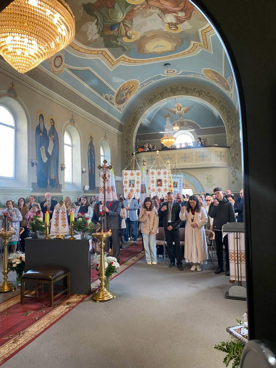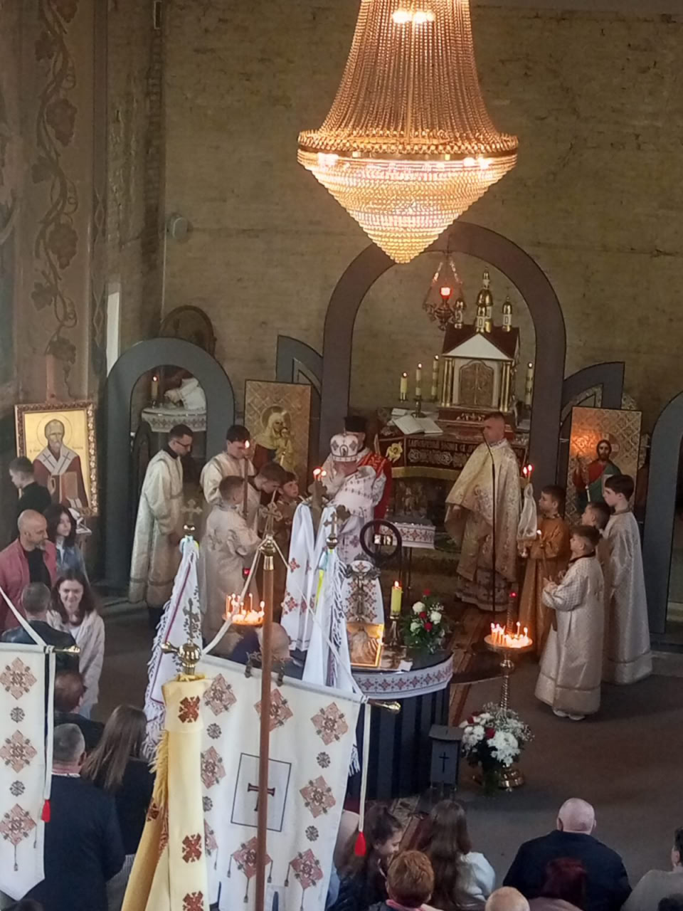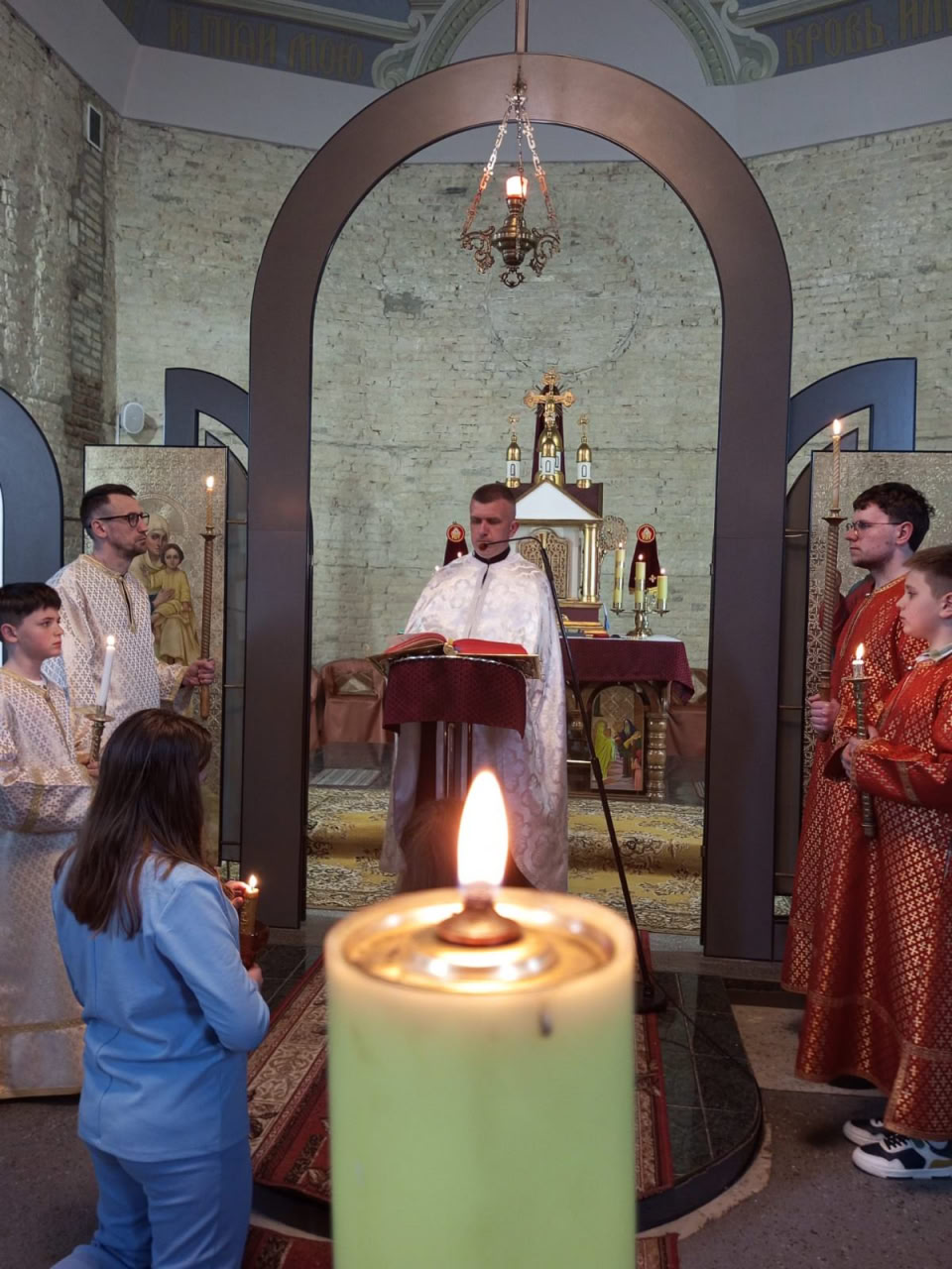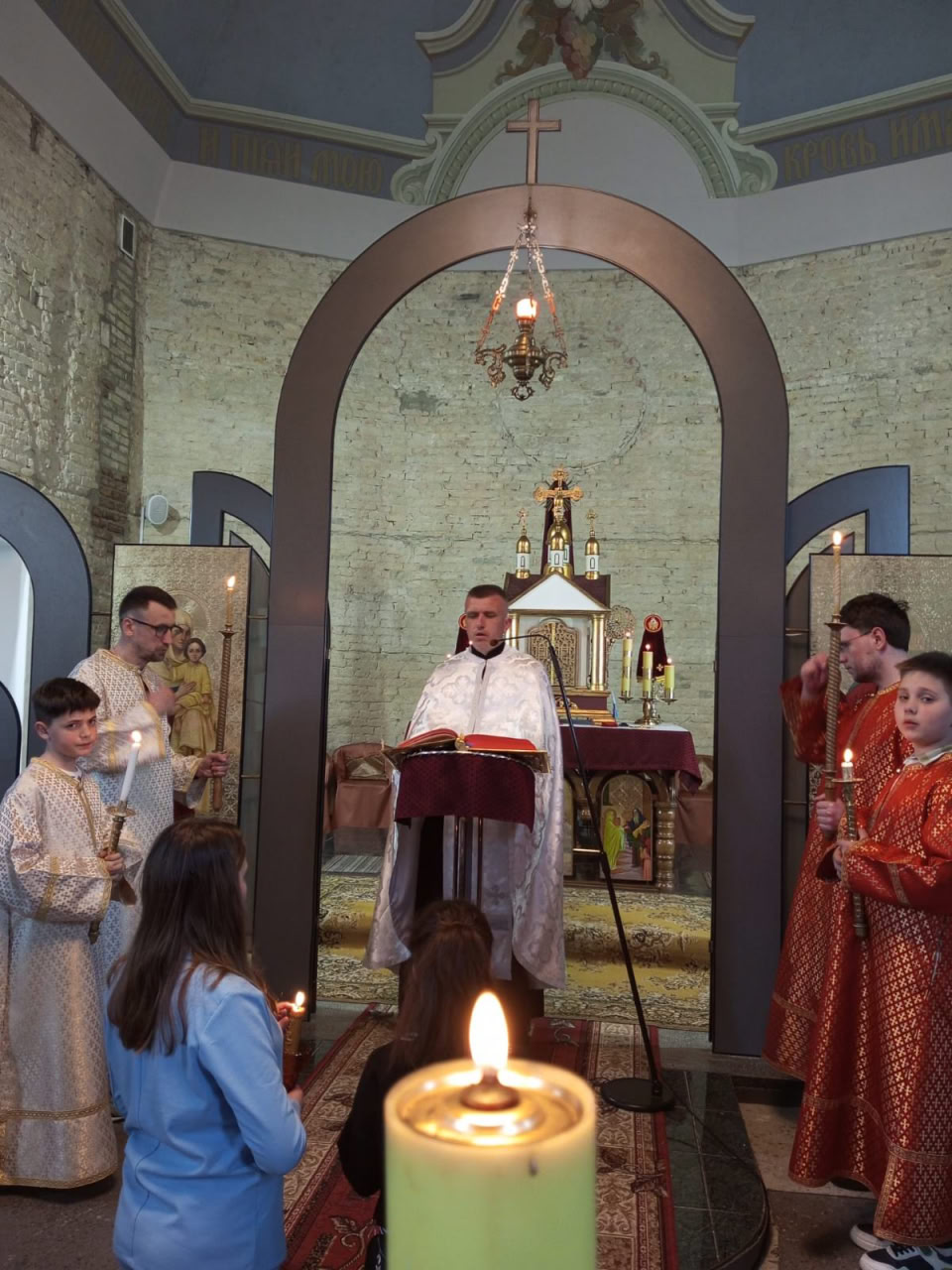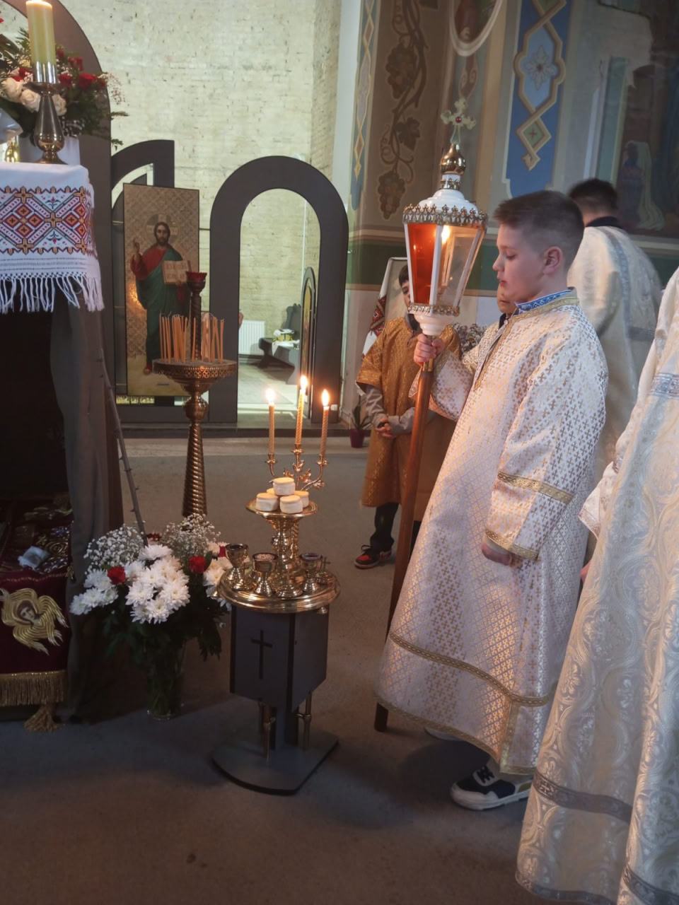 О 6:30 у неділю розпочалася Пасхальна Утреня, під час якої храм наповнився співом: «Христос воскрес із мертвих, смертю смерть подолав» Радість Воскресіння, яку неможливо передати словами, охопила всіх присутніх. Велична Пасхальна Літургія стала кульмінацією нашого спільного духовного шляху: від посту й покаяння — до світла й радості перемоги над смертю. Наприкінці вірні мали змогу освятити Великодні кошики.