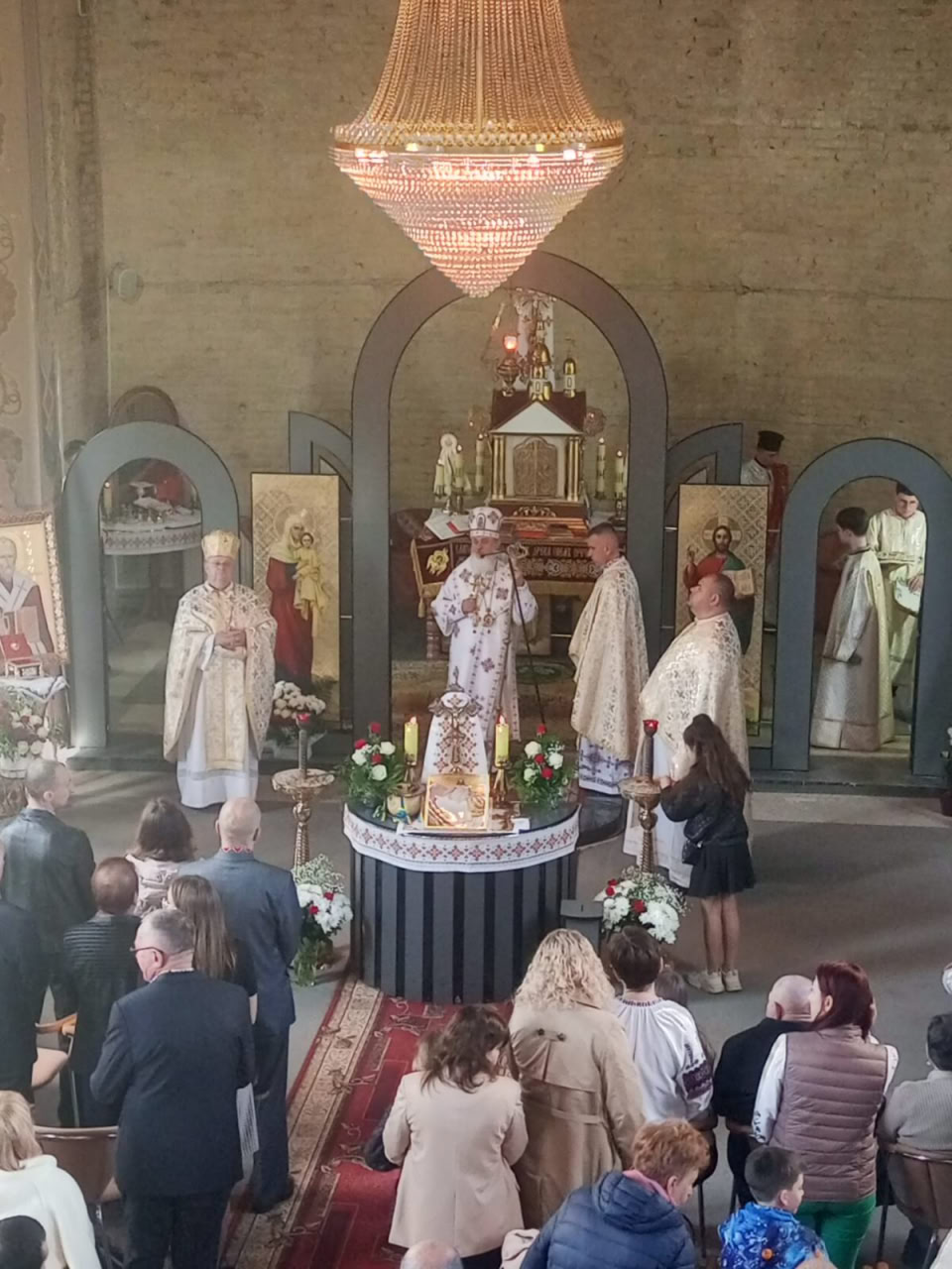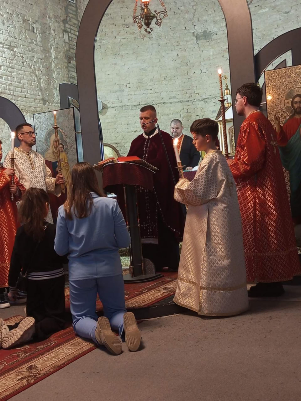У Велику п’ятницю, в день скорботи, ми молилися під час Вечірні з виставленням Плащаниці — хвилюючого моменту, коли виноситься Плащаниця з тілом Спасителя. Усі присутні мали можливість приклонитися перед Христом, який помер заради нашого спасіння.